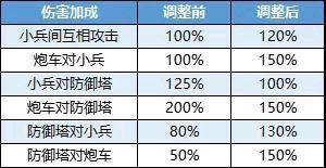 防御塔,对于小兵的伤害也加强了(意味着塔能更快的消耗兵线),小兵对防御塔的伤害减少,现在版本大家都知道防御塔简直太弱了,兵线进塔没人管的话,塔的血量被磨得很快!
