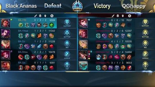 开局QGhappy反掉BA一个小野。3分40秒,QGhappy张良闪现大招配合队友击杀BA芈月拿到一血。6分钟中路团战QGhappy击杀BA张飞。10分钟上路,BA百里玄策被QGhappy击杀。12分钟,BA黑凤梨抓住机会击杀QGhappy盾山,接着BA被QGhappy反打,QGhappy马可波罗拿下三杀。QGhappy拿下主宰。14分钟,QGhappy利用视野盲区,下路包抄BA芈月并击杀。16分钟,QGhappy下路击杀苏烈,中路兵线到来,QGhappy乘势破掉中路高地进攻BA水晶,BA芈月在外带线被QGhappy孙策缠住无法回防,QGhappy击破BA水晶,取得比赛胜利。