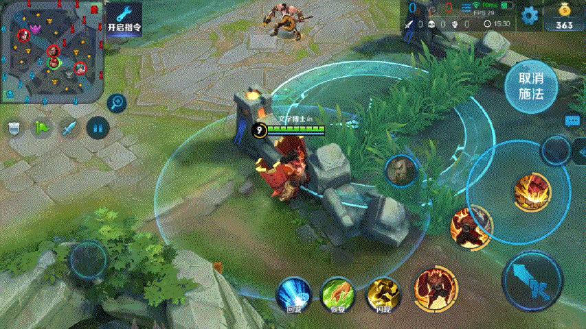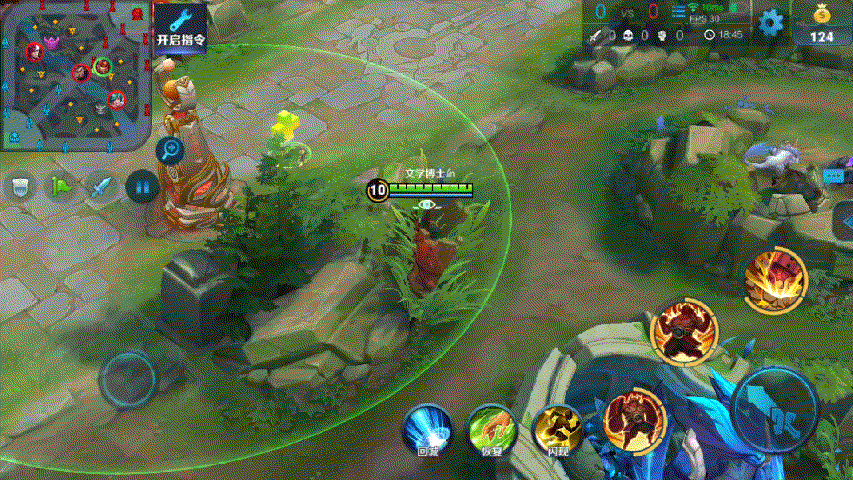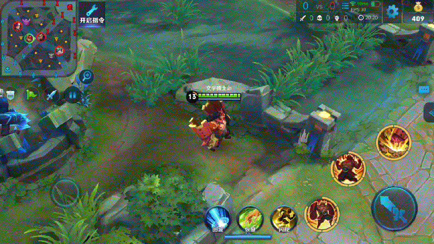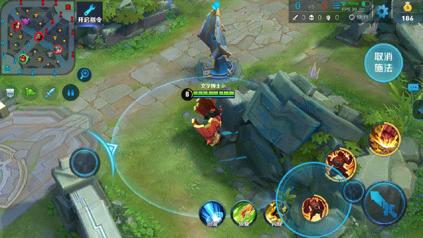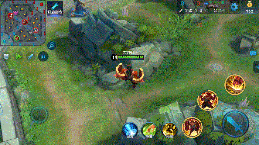 上图为中路草丛,团战的敏感点,廉颇直接开大进场,队友可以在周围掩护,控到人则可以开团,控不到人则可以占到视野