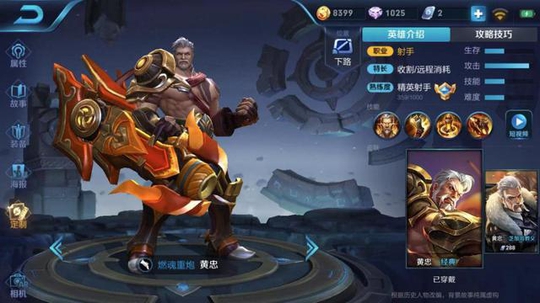 黄忠因为被动的原因在前期的伤害不弱于战士,因此在输出的手法上,用二技能直接丢对面身上造成一个破甲效果还能给自己增加护盾。然后就上去普攻输出,如果对面反打开一技能放风筝,如果对面逃跑就一技能来追击。