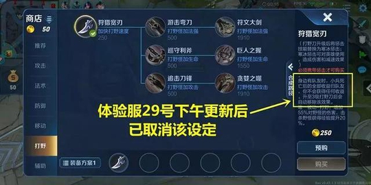 有人会问打野刀收益的问题,这里特别说一下该方案是被取消的,并不会实装。 携带一、二级打野刀在周围有队友时,线上兵线你将得不到任何收益。