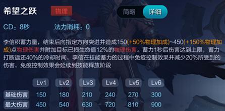 大招是李信爆发最高的技能,蓄力斩出三道剑气,蓄力过程中霸体并获得20%免伤。