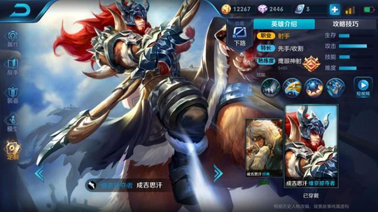具体打法:成吉思汗在前期的伤害并不高,相对其他射手来说的话。所以说成吉思汗在前期最好是稳住自己的发育,因为如果一旦成吉思汗在前期没有发育起来的话,那么后期就算经济跟上来了,也很难有那种手感。而这个英雄又没有什么位移技能,所以说很容易就被对面抓住,因此想要玩一手好的成吉思汗的话,必须要学会不出去浪,稳住自己的心态,有良好的意识,尽量不出塔不带没有把握的节奏。