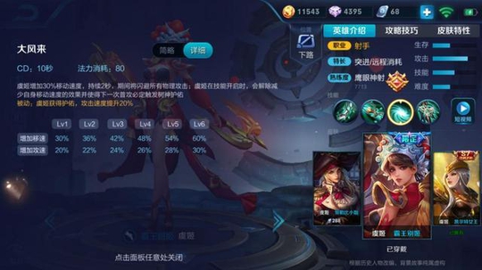 虞姬的2技能是其主要技能,这里我推荐大家优先点满。2技能叫大风来,开启后获得移动速度加成,期间免疫物理伤害,下一次的普通攻击必定触发被动且会解除自身被减速的影响效果,被动是增加攻击速度。随着2技能的等级提升,移动速度与攻击速度都会增加。现版本虞姬的高攻速主要源于2技能与大招,2技能的被动让虞姬从爆发型射手转型到攻速暴击流。