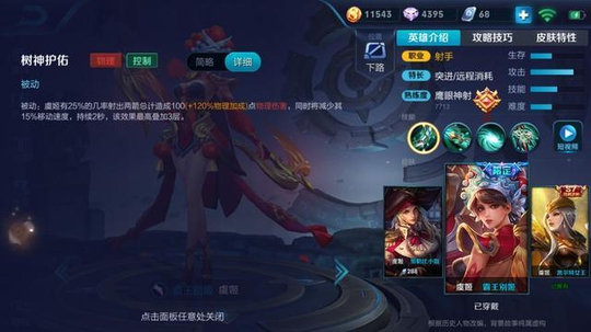 现版本的虞姬在更新了之后爆发变低了,但攻速更加的快了。以前的草丛阴人的秒杀能力被抹去的同时但持续输出变得更加的高了。首先是技能介绍,被动为树神护佑,虞姬有25%的几率射出两箭,同时减少其15%移动速度,持续2秒,最多可叠加三层。这个技能可以说是虞姬的灵魂技能了,随着虞姬攻速的加快,被动的触发几率也会被提升,这会使虞姬拥有非常高的追击能力与风筝能力。