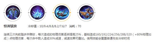 技能解析:孙策的被动是怒潮,每过一定的时间,孙策的下一次普通攻击就会获得一定的额外物理伤害和生命值回复能力。此外,孙策在受到物理伤害或者是真实伤害后,还会短时间的提升自身的护甲值。孙策的被动让孙策不仅拥有很强的输出能力,还能够很好的提升孙策的续航能力和生存能力。在对线时,由于被动的关系,孙策不仅能够依靠被动对对方造成大量的伤害,还能够很好的回复自身生命值,从而更好的提升线上的续航能力。而在团战中被动更是能够让孙策能够短时间的拥有高额护甲,从而让孙策更加难以被击杀。