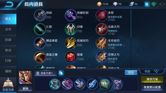 暗影战斧与破军是杨戬的必备攻击装,因为杨戬大招可以回复很高的血量,所以我们前期没有必要先出防御装,只需要在中期做一件名刀来保命就好。