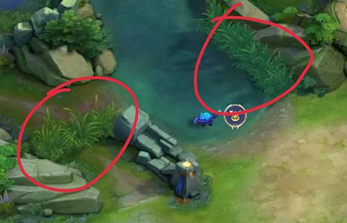 这种情况一般都是下路射手辅助对敌方上单,这里我们要主要关注这两个红色圈出的草丛。