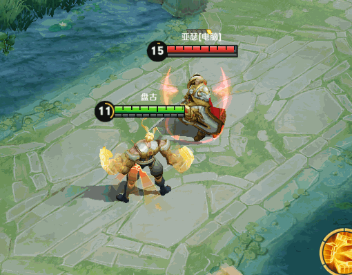 当斧头碎裂后碎片会变成能量臂,盘古需要15秒时间重新为斧头积蓄能量,在能量积蓄完毕后盘古可以将能量臂重铸为斧头。从能量臂切换到斧头期间,盘古无法攻击同时处于无敌状态,切换后5秒内的下一次普攻可以击飞敌人0.5秒。