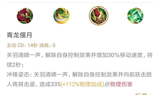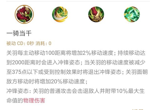 关羽是一名爆发型英雄,对操作要求适中;主要依靠一技能输出;二技能解除控制;大招加快能量积攒,打出无限推的骚操作,不愧是关二爷!