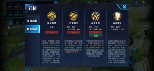 一技能: ?6?7刘备自高自身移速,同时下次攻击变成两次连射。