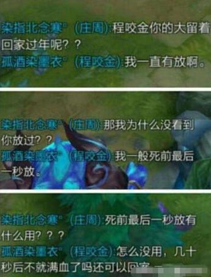 庄周看到自己这边的程咬金简直就是气不打一出来,每次打团不开大就直接秒躺。大家都知道,程咬金的大招是快速的回血,让人怎么打也打不死,特别恶心。忍一时越想越气,庄周实在忍不了了,直接怒喷程咬金:“程咬金你的大招留着回家过年呢??”想不到程咬金丝毫没有悔过之意,还理直气壮地说:“我一直都有放大招啊!”庄周很是疑惑,就问那我咋没看你放过呢? 程咬金的解释让人好气又好笑,“我死前一秒放的大招,过几十秒就满血了呀,还可以回家,多方便。”这位朋友,我劝你善良,你确定程咬金大招是这么用的吗?