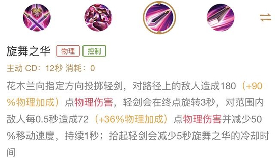 爆发伤害低,持续伤害不错,是木兰能不能平稳到达4级的一个重要技能。