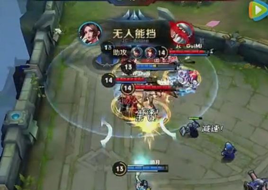 技能释放第一步在合适的较远距离使用二技能控制对手,这时敌方英雄会被减速,法抗也被削弱。接下来用一技能突进击飞敌方英雄,并结合被动,跳跃到敌军身后。最后用三技能把敌军推到我方后排英雄的射程内。敌方后排英雄会被这一套连招所秒杀,即使是前排也会被重创。