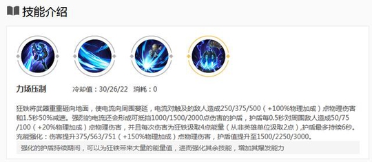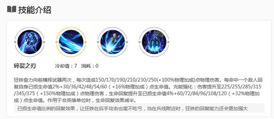 首先狂铁的普攻或者技能命中目标会叠加能量,到达一定数值会强化技能并消耗部分能量,同时普攻造成额外伤害并回复生命值,狂铁的伤害来源全部来自于能量后的强化效果,所以攒能量是完好狂铁的关键。