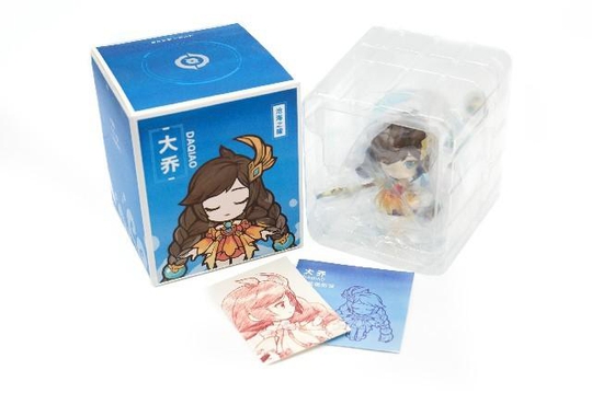 拆开盒子里面有大乔手办、大乔手绘卡片、说明书。手办包裹得严密细致,被保护得很好。