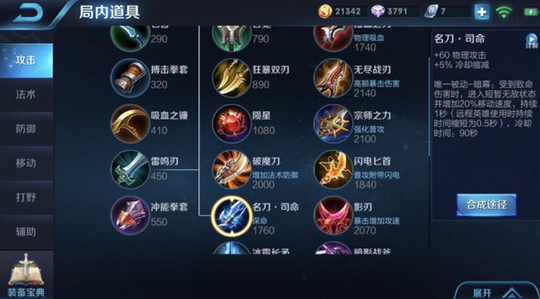 攻速鞋提供了30%的攻速加成,这个在前期提供的攻速加成还是蛮可观的;闪电匕首提供了30%的攻速加成、20%的暴击几率、8%的移动速度,这些都是很适合虞姬的属性,还有一个冷却cd只有0.5s的被动,30%的几率释放连锁闪电。要知道虞姬的被动树神护佑就是有25%的几率释放出两支箭,而且还有减速的,还可以叠加三层,所以前面出的这两件装备可以更快的打出虞姬的被动,是很虞姬先出的,而且这个版本电刀的性价比也是很高的,是可以先出的。