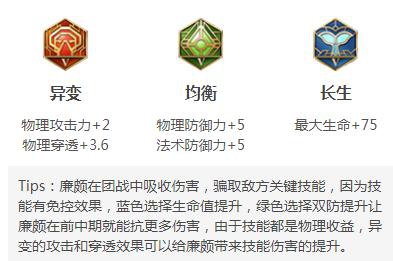 首先我们来介绍一下廉颇的技能,廉颇的一技能是一个位移的击飞技能,这个技能通常在前期的时候可以起到关键性的作用。廉颇的二技能的是一个范围伤害性技能这个技能的伤害只是比较高的,但是因为比较固定,所以比较难打到人。廉颇的三技能是可以对着目标范围砸三下,第三下的时候可以击飞,前面两下都是减速。廉颇的被动技能释放技能的时候不会被控制,并且可以免伤20%。铭文选择带肉铭文,出装选择出辅助坦克装。召唤师技能可以带眩晕也可以带闪现。