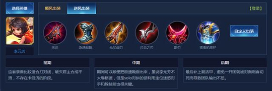 推荐理由:泣血之刃作为后续出装的目的其实非常明显,那就是加强续航能力,完全不用回家,残血时依靠野怪就能进行恢复。然后补出暗影战斧+破甲弓的双破甲属性的存在,使得李元芳无论前期、中期还是后期都有很高而且极其稳定的输出,攻击无论打在坦克还是脆皮上,对方都会痛的要命。