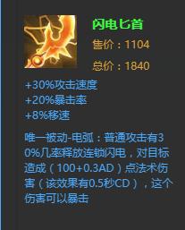 第三件补充闪电匕首这件综合性价比较强的装备,有了这个才让黄忠在中路能拿到五杀,原因就在于频繁暴击。无尽战刃加闪电匕首40%暴击率铭文16%暴击率被动不是炮台情况下7.5%暴击率=63.5%暴击率