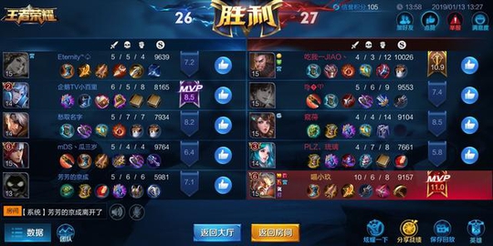 在对局上可以看到一些数据,就比如这个黄忠逆袭翻盘局面,前中期黄忠一直面临边路打野辅助中单的蹂躏。直接就是无限制的针对到了中期已经0-6,根本连开大的机会都没有,当然开了大死的更快一点。队友都对黄忠放弃了,在把无尽之刃、闪电匕首做出来之后在中路参加了一次大型团战,中路左边靠蓝BUFF草丛直接开大,当时敌方都在中路靠近右边河道,队友经过拉扯把韩信引入我圈边缘直接三炮轰死,直接取消大招进行疯狂的平A,虞姬已经在团战中放掉了2技能,直接锁定头像点三下就死了,黄忠有被动的加持攻击暴击都提升打人很痛(因为我带的是16暴击),诸葛已经被耗残也受不了我一下暴击,可能是人品爆发几乎都是打的是暴击伤害,一波五杀直接从0战绩达到5-6之后就直接把中路推到二塔,在收掉了对面所有野区加上上下路兵线,经济直接猛涨见一个秒一个,打掉主宰第三件破晓刚成型不久就结束了比赛。