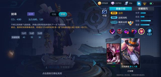 被动:每次击败英雄或助攻,剑冢都为干将增加15点永久法术强度,最高20层。