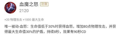 血魔之怒(加生命和物理攻击,被动增加物理攻击和护盾)