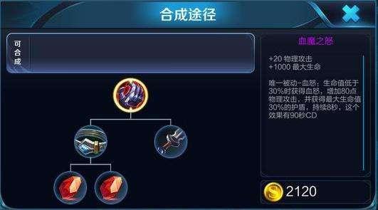 可能提起这件装备有很多人都不知道,甚至玩了很长时间都没有用过。但你不用并不代表它就不强,血魔之怒是一件非常强大的装备。有很多人之所以没有用过那是因为找不到这件装备的定位,毕竟它的基础属性是不怎么样的,只有1000点的血量和20点的攻击,所以不会引起任何人的注意,但是血魔之怒的被动却是非常的强大,可以在生命值低于百分之三十的时候,能增加一个自身最大生命值百分之三十的护盾,并同时提升80点的攻击力,可持续8秒的时间。虽然说项羽在触发被动的时候能减伤百分之四十,但是毕竟这个血量实在是有些危险,但如果有了血魔之怒的被动那就不一样了,相当于在有减伤的同时,把生命值提升到了百分之六十的程度,可让他看似残血,但却说什么都打不死,能把生存能力提升到最大程度。