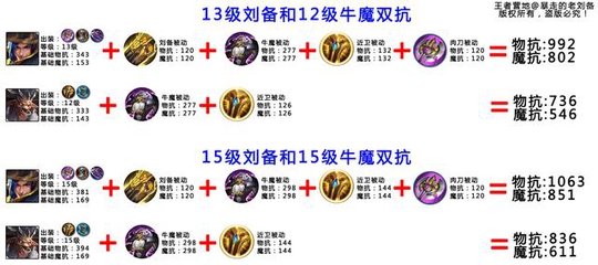 这两个英雄搭配这样的装备,刘备就拥有1000+护甲值,另外还拥有851点魔抗。