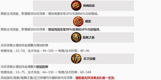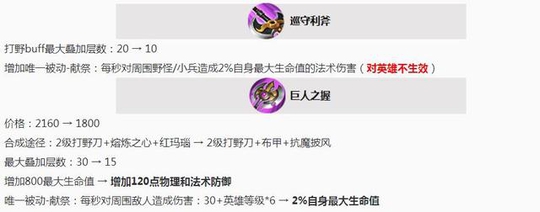 在装备的改动上,除了对法师装和辅助装的调整,还下调了部分攻击装的数值。