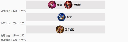 破晓,碎星锤,破军和无尽的数值下调,其实就是为了降低战士刺客的中期爆发和射手的后期输出,从而让C位和坦克的生存环境得到改善。