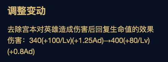 仍然是基础伤害提高,但是Ad加成有所降低,总体来看应该算是一个略微的下调。