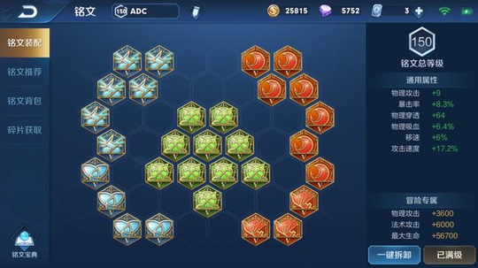 这是一套ADC基本上都通用的铭文,综合属性提供得比较全面。主要在攻速和暴击率,以及一定的物理吸血这上面,能够对射手前期有一个很不错的帮助,来让自身能够更加稳定而且安全的发育。而且射手的铭文在选择上最好也是兼顾多个方面的,这样的话对自身的帮助会更好。