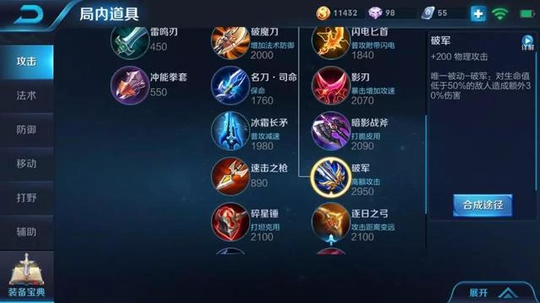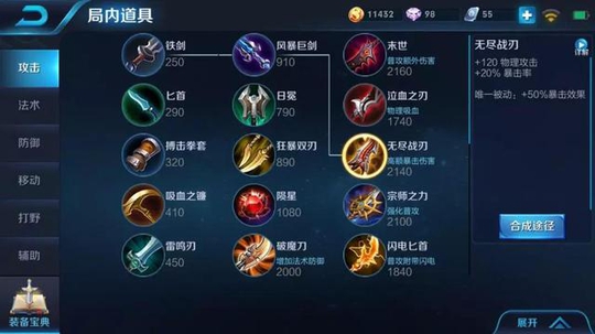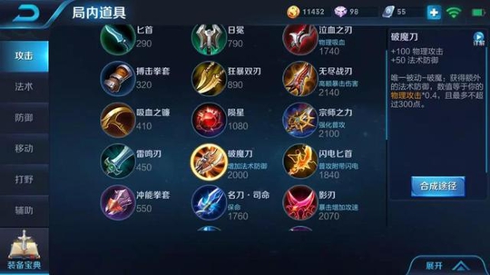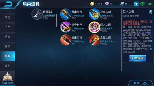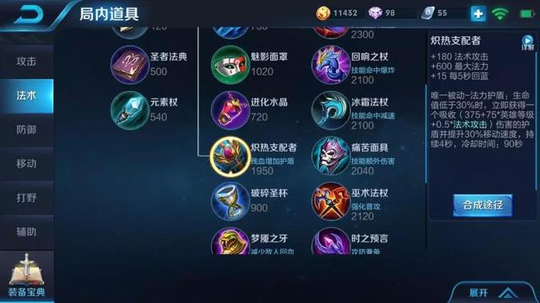 合成途径:2级打野刀+熔炉之心+红玛瑙→二级打野刀+布甲+魔抗披风