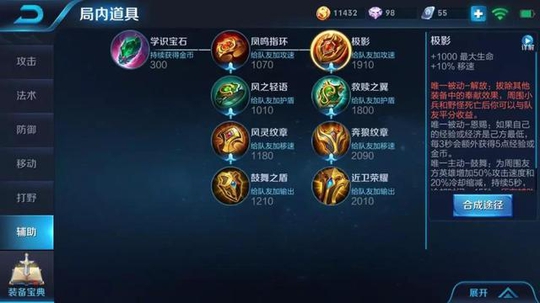 解析:极影这件辅助装在人局中出装率极低,虽然攻速/CD对于射手/法师来说刚需,但短时间增幅性价比实在算不上太高。