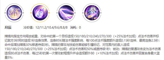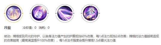 这个被动可以让嫦娥在受到伤害的时候牺牲自身蓝量来抵挡伤害,让有蓝量的嫦娥可以得到不错的坦度,同时受到伤害时蓝量的消耗也是巨大的,大概吃敌方一套技能蓝量就会见底,所以一定要注意自身蓝量的控制和回蓝效果。