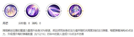 爆发很高的技能,但是超高的蓝耗让这个技能在前期并不能造成太大的伤害,而且蓝量的消耗还会导致嫦娥自身的身板变得非常脆弱,所以在前中期清野或者清线时,一定要避免频繁的释放此技能而导致自己在面对敌人时,由于缺蓝而打不出此技能的伤害。(有点则点)