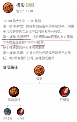 据了解后发现,这其实是一个三排车队,另外两个辅助就是养猪流的形成了。那么,这两个辅助最核心的装备就是极影了,对于玄策来说,收益极高。大家可以先看看这件装备的效果。