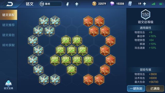 作为一名靠持续输出打伤害的ADC,再加上他没有位移技能和足够的控制,所以首先要考虑的是生存能力,只有生存下去在团战中才可以发挥威力,需要加移速的铭文,在输出方面作为靠平A输出的ADC暴击铭文、攻速铭文和物理穿透铭文是很适合的,这样才可以打出高额伤害Carry全场。这一套铭文及可以很好地发挥鲁班自身技能扫射的优势,打出爆炸伤害,也很好的弥补了鲁班生存能力不太强的劣势,可以最大限度的发挥出鲁班的威力,这样高爆发,高移速的鲁班必将给轻视大意的敌方英雄造成致命伤害。