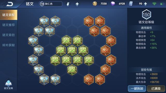 下图为15级后150级铭文以及所有装备的属性图(未叠加被动)
