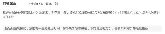 一技能,作为后手控制使用,也可预判释放或者封走位,也是重要的保命技能。