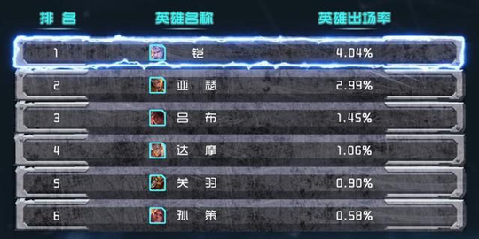 王者荣耀:官方发布战士出场率榜单,新手英雄亚瑟是第2名
