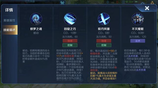 被动:修罗之魂可以让铠在和敌人单挑时造成大量额外伤害,特别是开了大招的铠,各位召唤师不要和开大招的铠硬刚,否则下场就是躺在地上了。