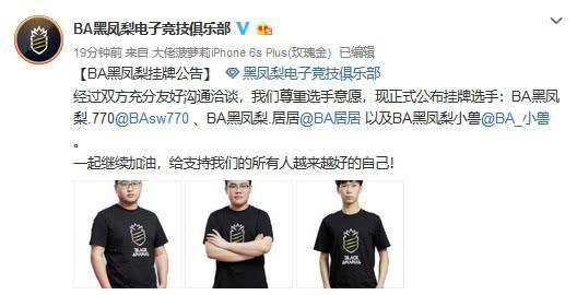 除了Hero之外,BA黑凤梨也官宣了770,小兽和居居三人的挂牌。昨天AT发表了一个“泰肥组合”的微博,暗示了770加盟XQ,这两位老将下赛季联手,不知道能擦出什么样的火花。不过考虑到770的年纪,估计打不了几年就会退役了。而BA挂牌小兽确实让人意想不到,通过小兽最近发的状态来看,感觉并非是自愿挂牌,不过也有小道消息说是BA老板不打算玩了。总而言之,如果770和小兽下个赛季都离队的话,那BA估计很难打出2018年秋季赛的成绩了。