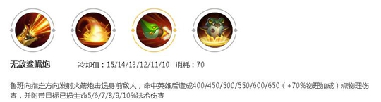 分析:3技能可以对敌方英雄起到震慑作用,可以帮助鲁班七号快速推塔。 同时3技能在团战比较混乱时使用,逼迫敌人不停走位, 对黄忠等英雄可以起到较好的压制作用。