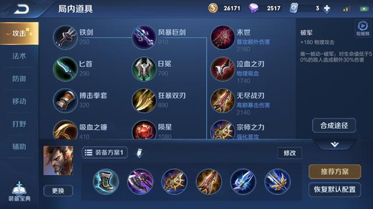 宫本现在有两个流派,一是半肉半输出,还有一种暴力流宫本,半肉宫本最好选择的铭文是调和+百穿,出装为:韧性鞋+黑切+冰痕之握+破军+魔女斗篷+复活甲,暴力流宫本可以直接选择纯输出,铭文选择6夺萃+4狩猎+10鹰眼+5祸源+5无双(夺萃与狩猎比例可以自选,祸源无双同理)。出装为:韧性鞋+黑切+宗师之力+无尽战刃+名刀+破军。其实半肉的宫本也能够切掉脆皮,全输出宫本切脆皮伤害已经溢出了,多余的伤害都是用来打战士和坦克的。