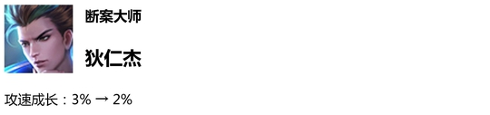 下调了后羿,狄仁杰的攻速成长,增加了李元芳的攻速成长。