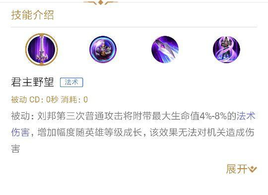 细节1:刘邦虽全为法术伤害,但技能中没有任何法术强度加成。一技能和被动只受血量最大值加成,二技能则是ad加成(只有60%,低的可怜)。所以出帽子,大书一类对于刘邦没有任何意义。