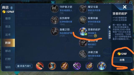 由于我们在团战初提前选中了要替换的装备,所以不用慢慢找,直接点“出售”,卖完之后,关闭商店,由于我们有预购这时候在屏幕左边金袋下直接就可以购买保命装备了,省去了我们慢慢找要买的装备的时间。从第二连续次换装开始我们比第一次多一个选中卖的装备步骤,这才是我们在团战中无限换装的桎梏所在。但是我们可以通过训练营多练把这个操作练成一种本能。做到无缝衔接才能在一次团战中多次换装成功!