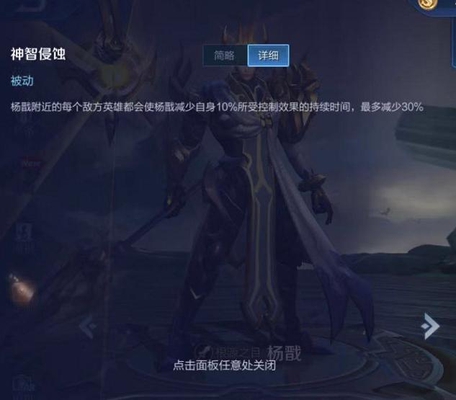 杨戬身边的敌方英雄都会为他减10%的控制时间,最多30%,加上抵抗之靴减少35%,被控制时间减少了浮动一半左右。